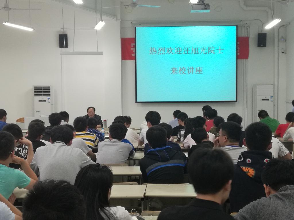 汪旭光结合自身经历和感悟指出:“大学生首先要立志干一番事业,成就事业贵在坚持;第二,大学除了学专业外,一定要多读书。读书多,就意味着眼界更加开阔,更加会思考问题,更具有创新精神;第三,将把人生经历的智慧和读书的智慧结合起来就会变成真正的大智慧,就会变成你未来创造事业的无穷无尽的源泉和工具。”汪旭光还通过浅析易懂的方式让大家了解了世界颠覆性技术的发展近况,对学院学科建设发展作了指导,激发了大家从事科学研究的兴趣。与学生的互动中,汪旭光对学生们的提问给予了细致全面的解答,并鼓励大家紧跟国际科学技术前沿,努力营造严谨、极富活力的学术氛围。